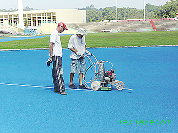 Line marking on running track is the process of painting or chalking white lines on the surface of the track to indicate the start, finish, and direction of different races. Line marking on running track requires a track plan that follows the standard regulations for the width, location, and separation of the lines.